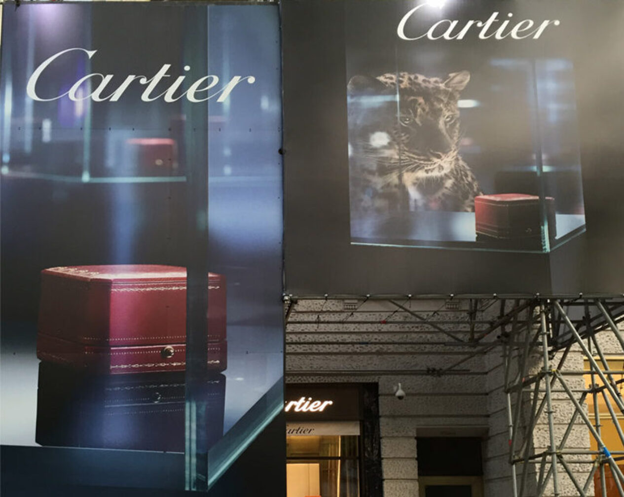 Účel: Digitální tisk je vždy užitečný, když je třeba provést rekonstrukci budovy, protože velkoformátové bannery pomáhají zatraktivnit staveniště pro zákazníky. To je ještě důležitější a použitelnější pro luxusní značky.