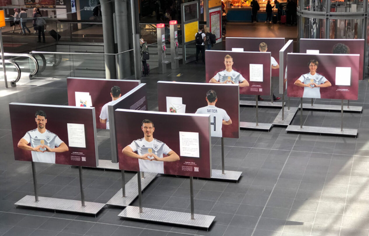 Účel: Tyto billboardy byly v roce 2018 součástí výstavy u vchodu na hlavní berlínské nádraží. Zobrazuje přátele a příbuzné německé fotbalové reprezentace, kteří vyjadřují solidaritu s hráči a přejí jim hodně štěstí.