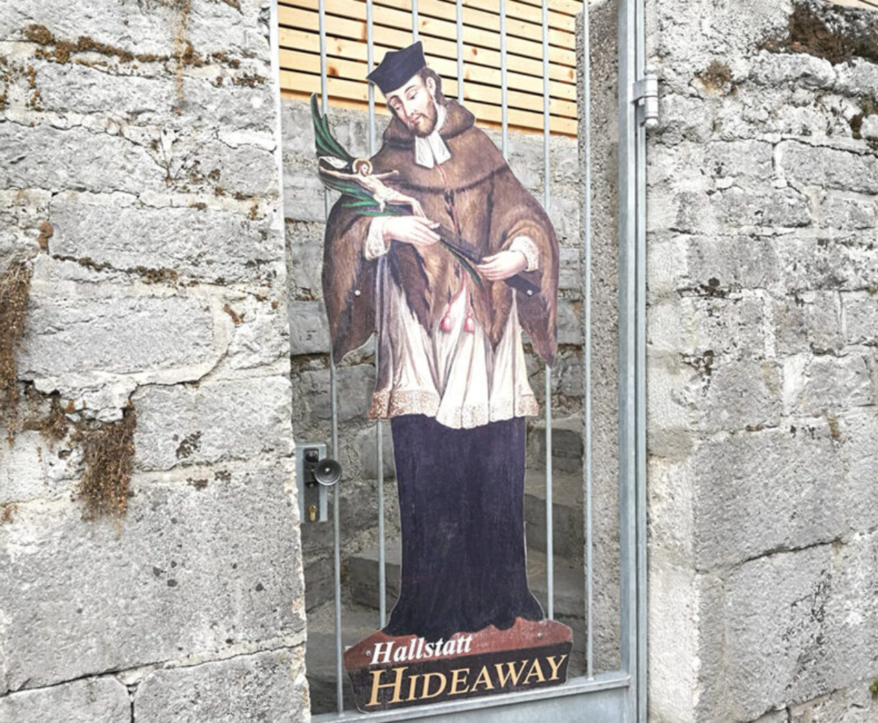 Určení: Tato obrysová postava antického kněze střeží vjezd do penzionu v rakouském Hallstadtu. Městečko nedaleko Hallstadtského jezera přivítá ve svých úzkých uličkách a uličkách ročně statisíce návštěvníků, a proto je většina soukromých pozemků kvůli určitému soukromí přehrazena zdí.
