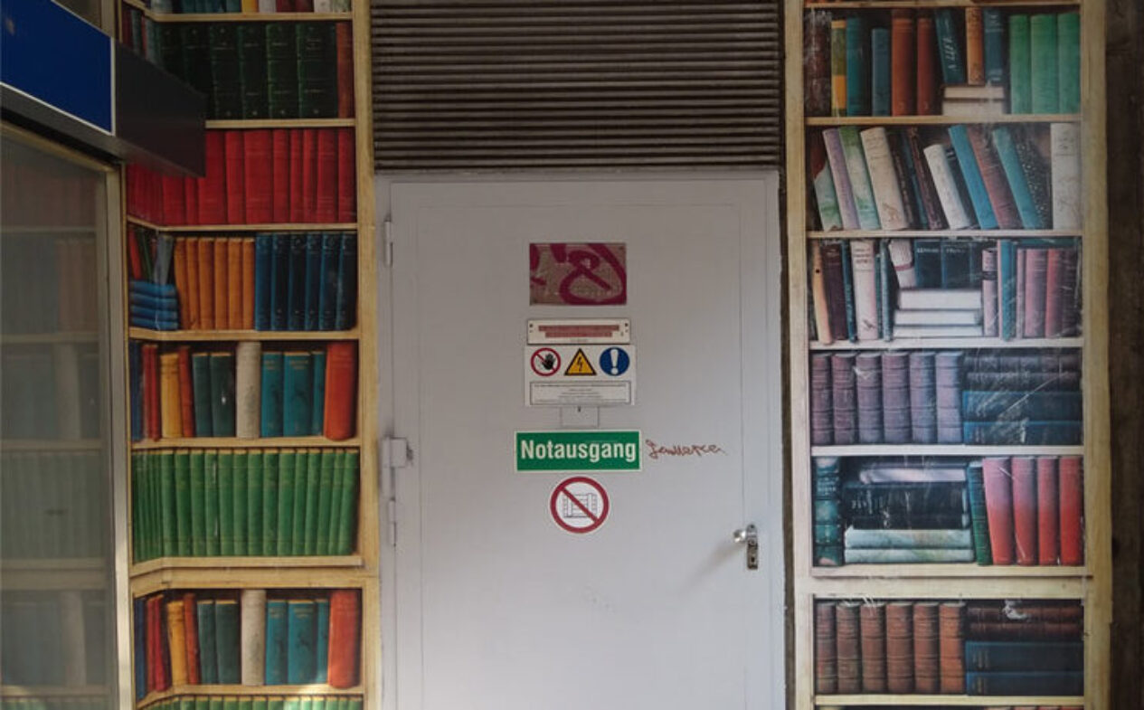 Účel: Tyto zabalené zadní dveře patřily do obchodu s knihami v mnichovské univerzitní čtvrti Maxvorstadt. Prodejna je již několik let zavřená, instalace však stále zůstává.