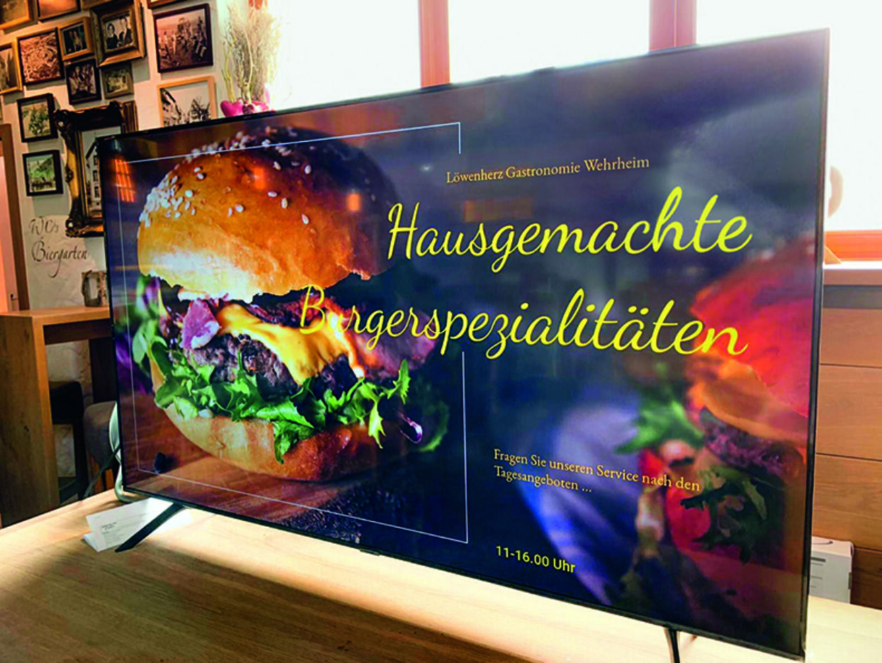 BILLEDTEKST: Alt indhold på en Digital Signage-skærm kan nemt ændres. På billedet: 75 tommer business-tv fra Samsung hos Löwenherz Gastronomie Wehrheim. Foto: Samsung