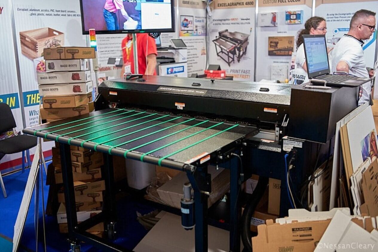 Το Excelagraphix 4800 της Xante χρησιμοποιεί κεφαλές εκτύπωσης Memjet και μελάνια για την εκτύπωση έγχρωμων γραφικών σε κουτιά.