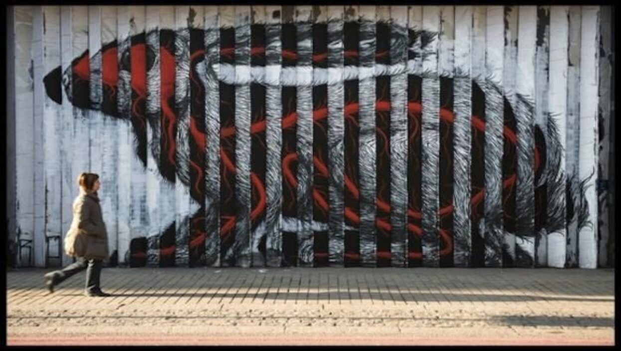 The attention-grabbing (and pretty scary!) lenticular posters feature the chainsaw-wielding serial killer in a moving, 3D image. This campaign is a great example of this particular printing technique – which is produced by covering a plastic sheet with many rows of tiny lenses to create an optical illusion.
