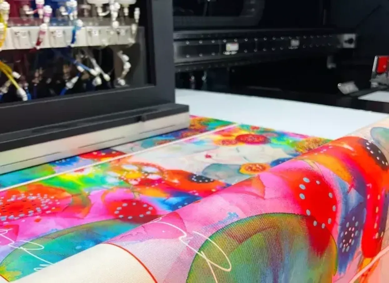 For many years, we have specialized in digital textile printing on polyester fabric. This fabric is mostly used in the advertising industry (flags, banners, etc.) and, to a lesser extent, in the fashion industry. We use two technologies in this print. The first technique is printing straight onto the fabric and fixing it at 180 degrees. The second approach uses roll-to-roll calendaring at the same temperature to transfer color from the paper to the fabric after printing on sublimation transfer paper. We use HP Stitch printers and original HP water-based dye sublimation ink in both cases.