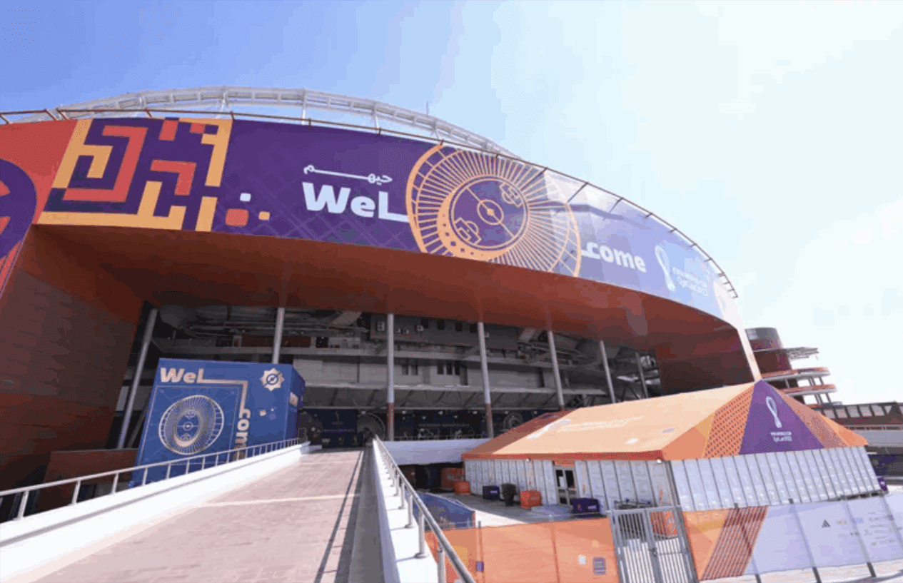 Digitally printed textiles are used by example for: building wraps, interior wall graphics, stretch ceilings, retail interiors, trade window décor, TV & theatre backdrops, trade show displays, retail/event upholstery, feather flags, café barriers, flooring mats, carpets and backlit displays and large-scale event décor such as FIFA 2022.
