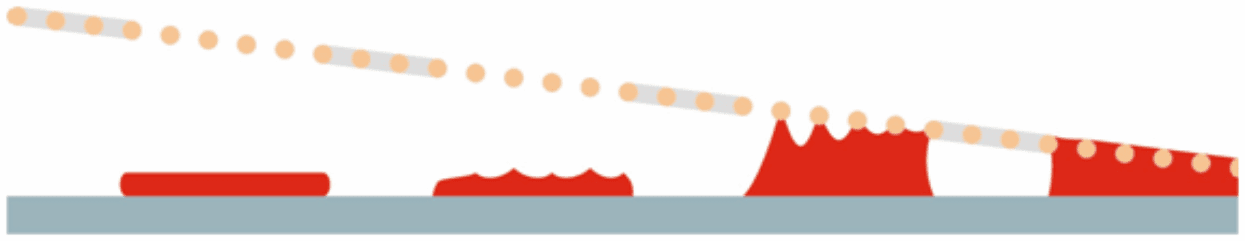 If the substrate is dirty or the surface energy is lower than or close to the surface tension of the ink the amount of ink left in the mesh will increase resulting in poor quality print. In some cases no ink will be drawn out of the mesh. If the mesh tension is low and takes time to pull the mesh away from the ink then some of the ink will be retained in the mesh openings resulting in an uneven film of ink.