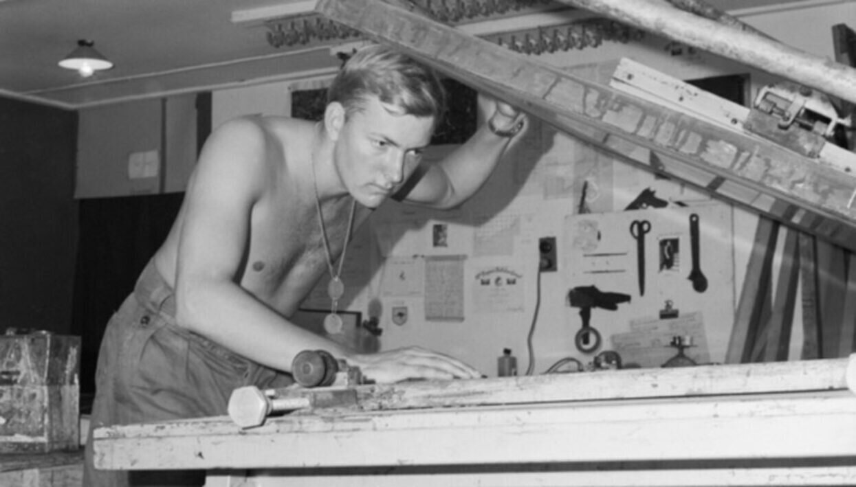 CAPTION: A member of the 1st Topographical Survey Unit, screen printing maps of the province of Phuoc Tuy (1968) Photo: Copyright expired – Public Domain