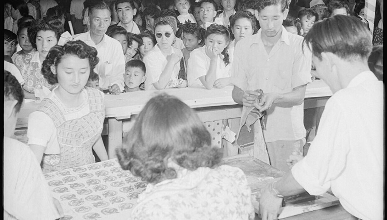 CAPTION: Production of felt pennants for souvenirs in the screen print (1943). Photo: Tom Parker, Public Domain