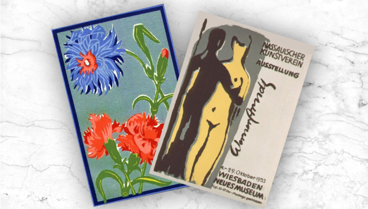 CAPTION: From left: Selectasine print from Berlin, 1930s, and exhibition poster Werner Arndt, 1953 (manual screen print). Photos: Archive Lengwiler, CC BY-SA 3.0, Werner Arndt, composition: S. Angerer