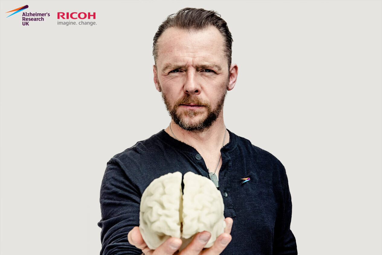 Description: Print technology giant Ricoh joined forces with Alzheimer’s Research UK to use 3D print to create models of the brain, showing the physical effects of the diseases related to dementia. Actor Simon Pegg, one of a number of celebrity supporters of Alzheimer’s Research, is pictured here with one of the models.