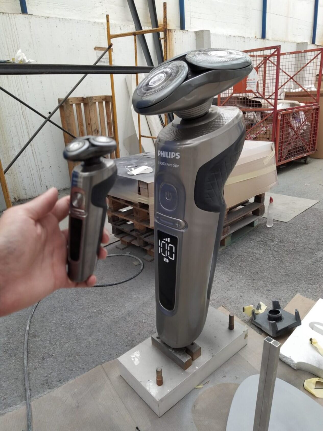 Description: Emoções ao Quadrado in Portugal used a Massivit 3D printer (link:  to produce a model of an electronic Philips shaver – at 10 times its original size! The completed replica measured 1.45m tall.