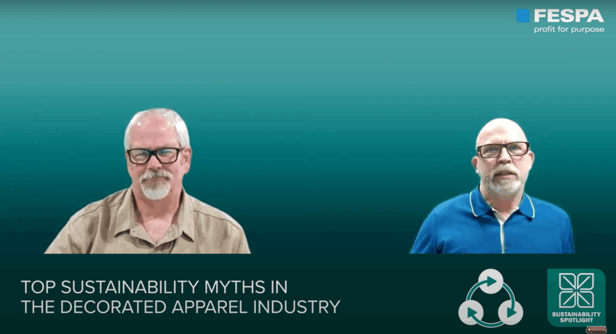FESPA’s Head of Associations and Technical Lead speaks to Marshall Atkinson from Atkinson Consulting about the top sustainability myths within the decorated apparel industry. These include water pollution, energy consumption, labour standards and resource depletion to name a few.