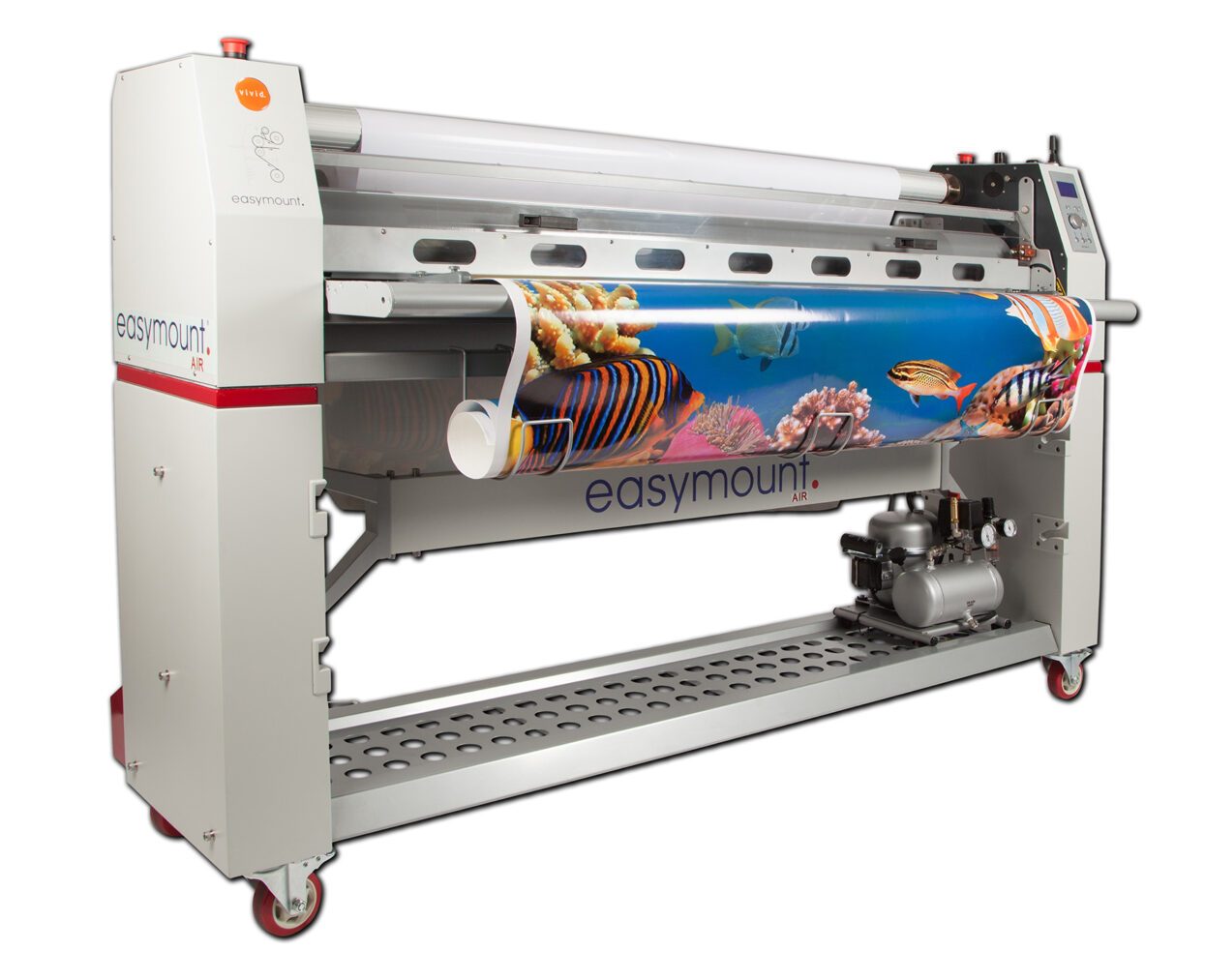 Ce Vivid EasyMount Air est un modèle à rouleau thermique unique de 1,6 mètre de largeur avec pression pneumatique du rouleau.
