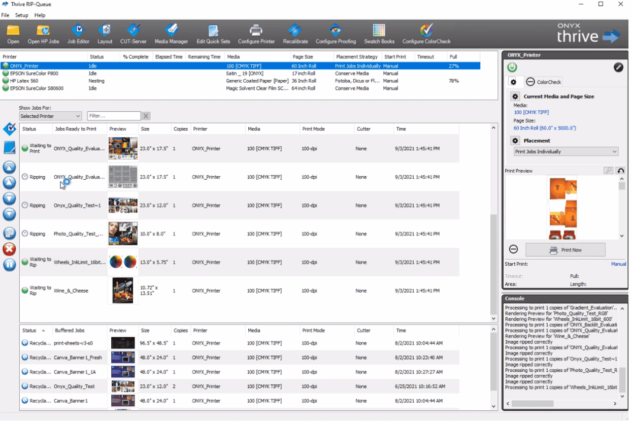 Smanjenje ljudskog elementa i rizika od pogrešaka i ponovnih ispisa također ima koristi od održivosti, koje, kao što smo raspravljali u nedavnom blogu post, pomiče se na agendi specijalizirane tiskarske zajednice. Jonathan mi je rekao: „Vidimo da se tiskari sve više usredotočuju na „zelenost“, a veliki dio toga je minimiziranje otpada. Želimo pomoći kupcima da poboljšaju svoje vještine održivosti, pa smo uveli novi Onyx softver koji im, na primjer, pomaže da shvate gdje griješe kako bi smanjili otpad.“