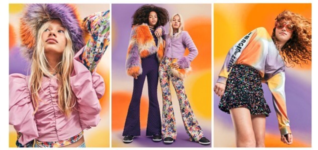 Tavaly a H&M kiskereskedő az Innovation Stories kezdeményezés keretében bevezette az első független gyermekruha-kollekciót, az „Imagine That”-t. A termékcsalád darabjait fenntarthatóbb anyagok felhasználásával gyártották, köztük a középső képen látható konfettimintás, bővített nadrágot.