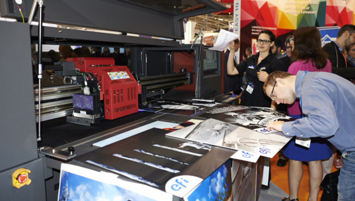 EFIは最近、FESPAデジタル2014でH1625 LED(上)を発表した。エントリーレベル市場をターゲットにしたハイブリッドプリンターで、LED硬化も採用しているため、ランプを定期的に交換する必要がなく、エネルギー使用量の低減が期待できる。CMYKインクと2つのホワイトチャンネルを搭載している。幅1.6mのプリンターで、最大毎時42平方メートルの生産が可能だ。