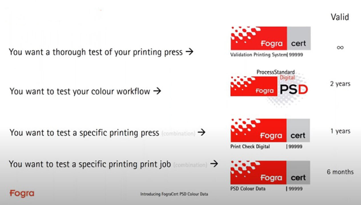 FOGRAは、デジタル印刷プロフェッショナル資格など、ユーザー向けの資格も提供している。このオンラインコースでは、カラーマネジメントとデジタル印刷に関する能力とノウハウを証明することができる。受講には試験があり、合格すると2年間有効の認定証が発行される。
