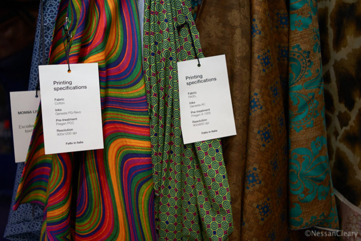 네산 클리어리는 천연 소재부터 합성 소재까지 다양한 종류의 직물에 대해 설명하며, 모두 다른 유형의 잉크와 처리가 필요하다고 말합니다.