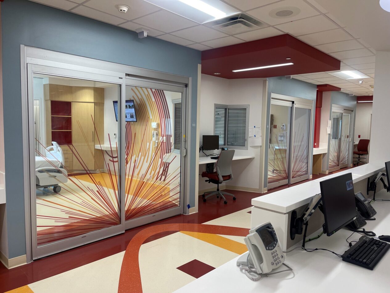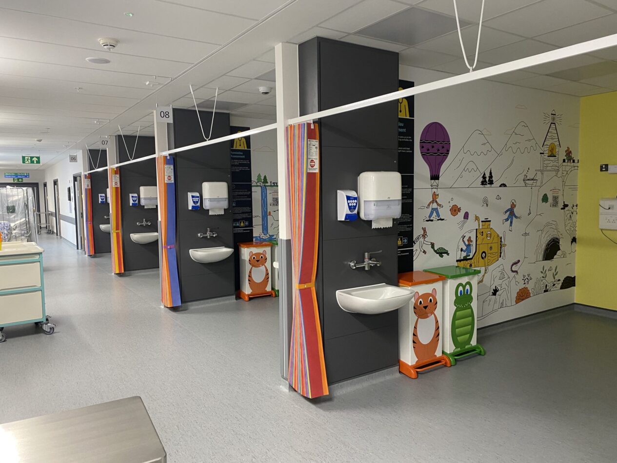 एउटा सुन्दर आवेदनको अन्त्य गर्दै, प्रिन्ट सस एसोसिएट्सले साउथ वेल्सका धेरै अस्पतालहरूको लागि ग्राफिक्स छाप्यो। ग्रान्ज युनिभर्सिटी अस्पतालमा रहेको बाल मूल्याङ्कन इकाईको लागि एउटा परियोजनालाई प्रतीक्षा क्षेत्र, पैदल मार्ग, मूल्याङ्कन खाडी र थिएटर कोठाहरूको लागि ३०० भन्दा बढी रैखिक मिटर ग्राफिक्स आवश्यक पर्यो।