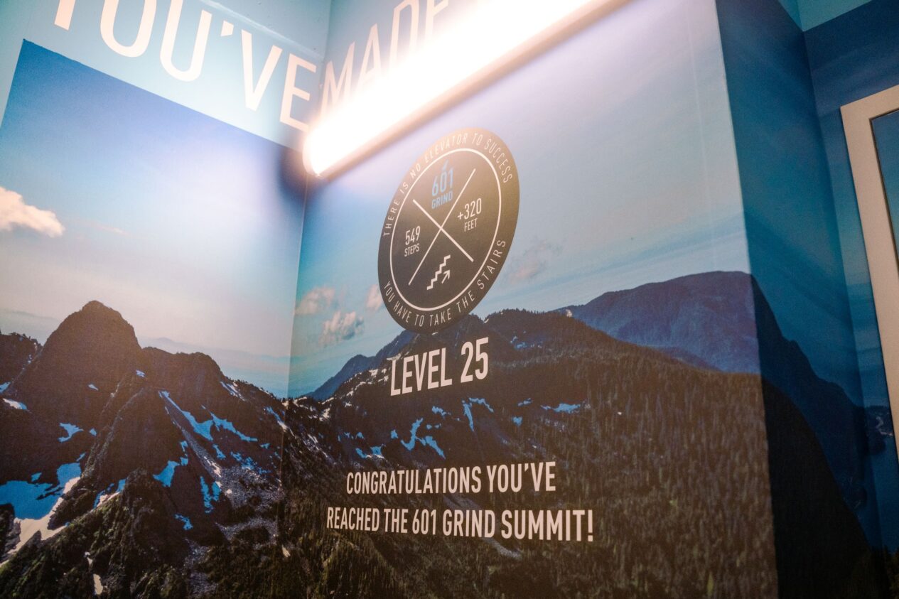 क्यानडाको प्रिमियर ग्राफिक्सले ब्रिटिश कोलम्बियाको एक अग्लो व्यावसायिक भवनमा रहेको सिँढीको भित्री भाग सजाउन ग्राफिक्सको एक श्रृंखला उत्पादन गर्यो। कम्पनीले ड्राईट्याक पोलर प्रिमियम एयर सेल्फ-एडिसिभ भिनिल प्रयोग गरेर HP R1000 Plus लेटेक्स प्रिन्टरको साथ ग्राफिक्स छाप्यो।