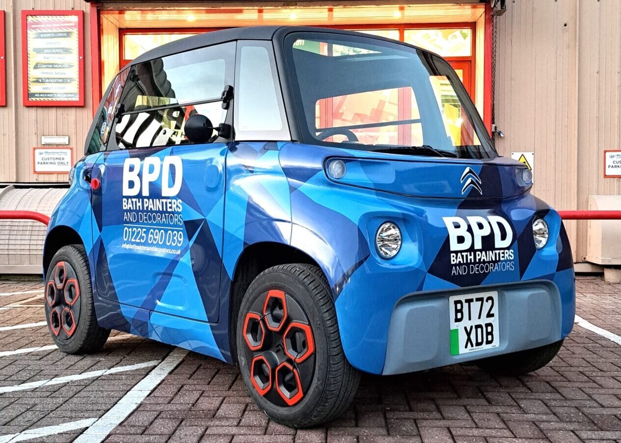 Opis: Dość wyjątkowa praca, Minuteman Press Bath użył Drytac Polar Cast do oklejenia jednego z zaledwie sześciu samochodów Citroen Ami w Wielkiej Brytanii. Praca została wykonana dla Bath Painters & Decorators, a samochód służy teraz jako mobilna reklama w okolicy.