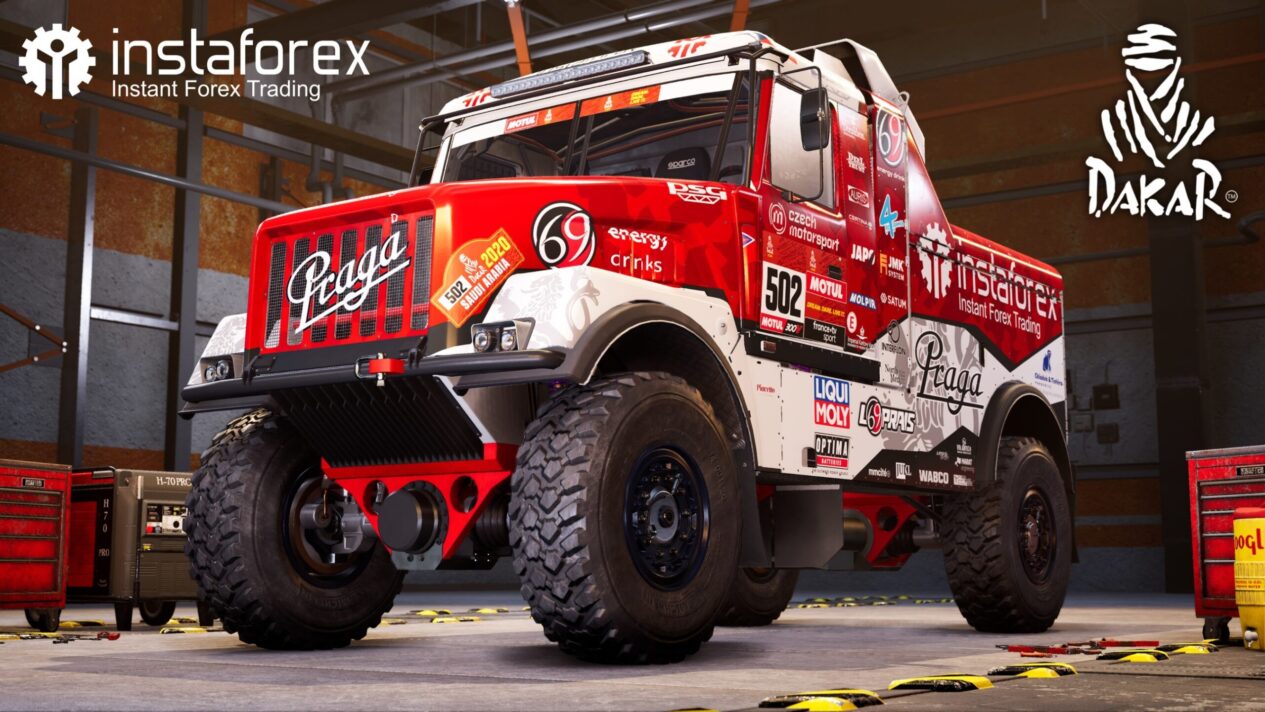 Opis: Jedno z najbardziej intensywnych wydarzeń w świecie sportów motorowych, Rajd Dakar wystawia zawodników na próbę w intensywnym upale. To samo można powiedzieć o pojazdach, które biorą w nim udział, a nawet o ich dekoracyjnej grafice. Oto jeden z naszych faworytów na imprezie w 2022 roku z zespołu InstaForex Loprais Team, prowadzonego przez czeskiego pilota Alesa Lopraisa.