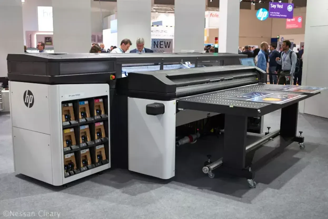 Натпис: HP је био пионир у употреби смолних мастила кроз своје латекс штампаче, укључујући и овај R2000 хибрид који може да штампа на чврстим материјалима. Аутор слике: HP.